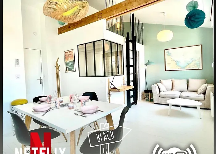 Dit strand appartement in Les Sables-dʼOlonne ligt op 2 km van de vuurtoren van l'Armandèche en is tevens op 2,1 km van de Plage du Tanchet. Blue Beach Les Sables D'Olonne appartement is gelegen in het strand, binnen een paar straten van de Zeedijk van Les Sables-d'Olonne.
